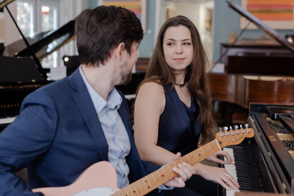 Back in the summer of 2017, the duo began appearing regularly at a bookstore downtown and winning the hearts of book-lovers with their signature blend of baritone and alto vocals against an infectious piano-bass groove. “If you’re going to be here again, next time I’ll bring a friend!” said one listener. Since then these two have played numerous shows and private events, including venues such as DROM Taberna, the Tranzac and more!